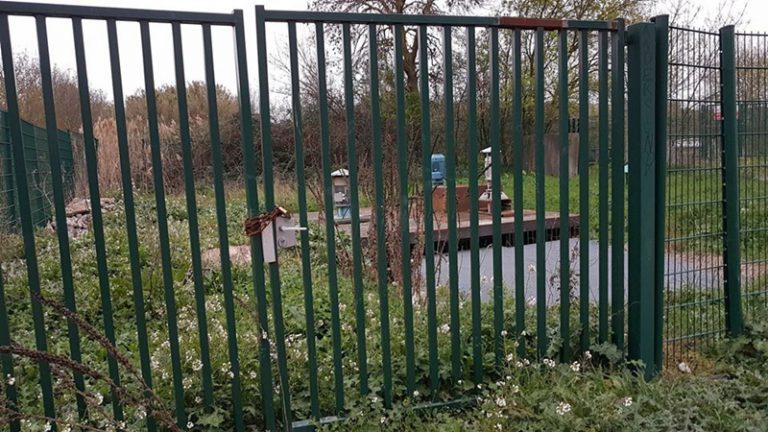 La station de pompage au nord du Thôt. Remarquez la rouille sur le cadenas et la chaîne qui ferment la portail.