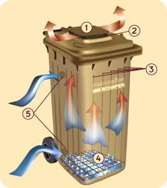 gris foncé). La pratique du tri à la source nécessite l’emploi d’un autre conteneur, la poubelle jaune dont le contenu est composé de déchets recyclables. Il existe cependant un conteneur adapté, le compostainer. Nos édiles l’ignorent ou font la sourde oreille ou prétextent que « ça ne marche pas » ! Nous affirmons que oui, ça marche.