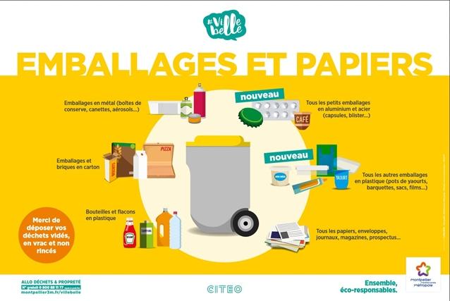 Depuis la publication du livre de Pichon-Moret, à Montpellier, tout est bon pour la poubelle jaune comme le montre le flyer que nous avons reçu des services de la métropole.